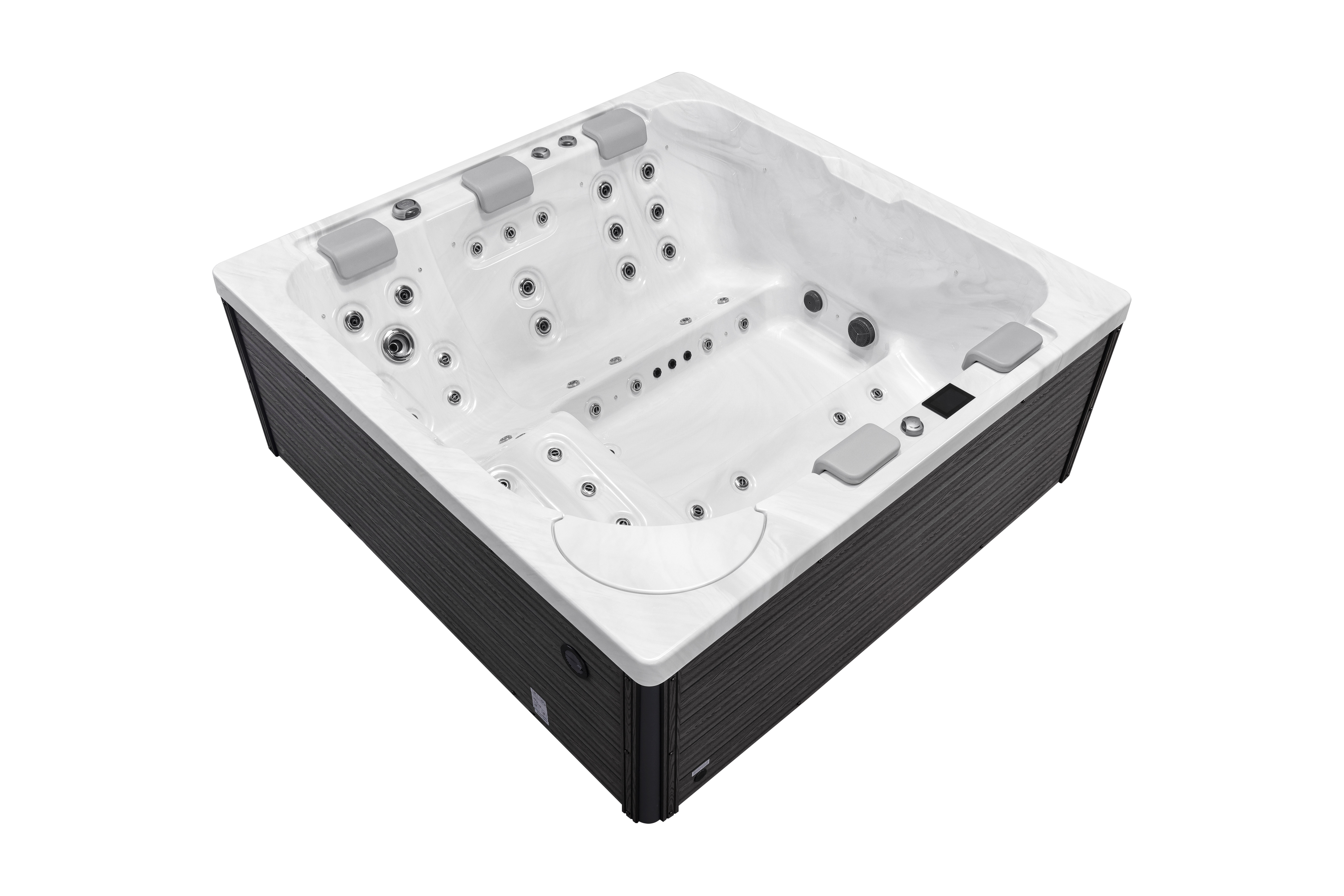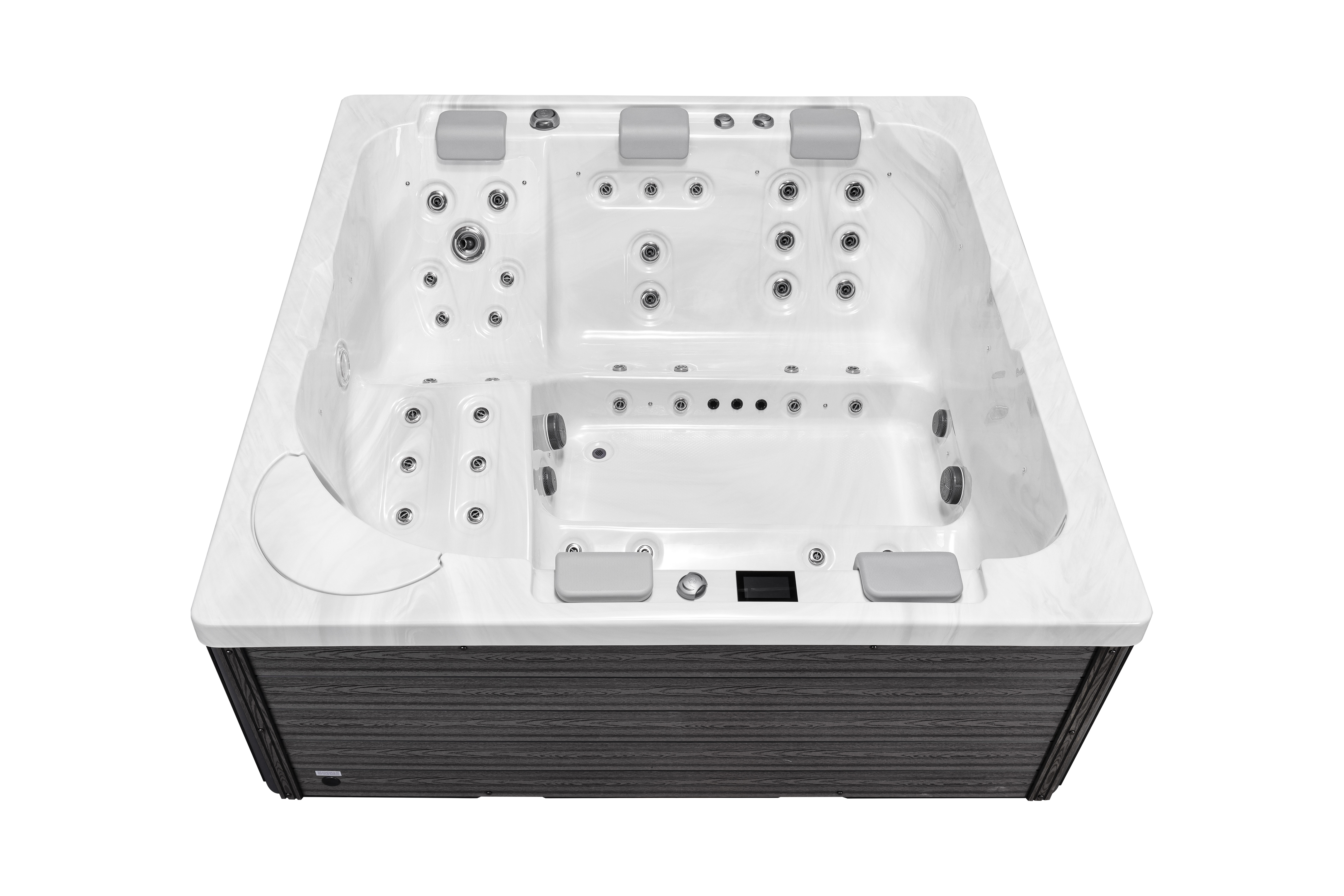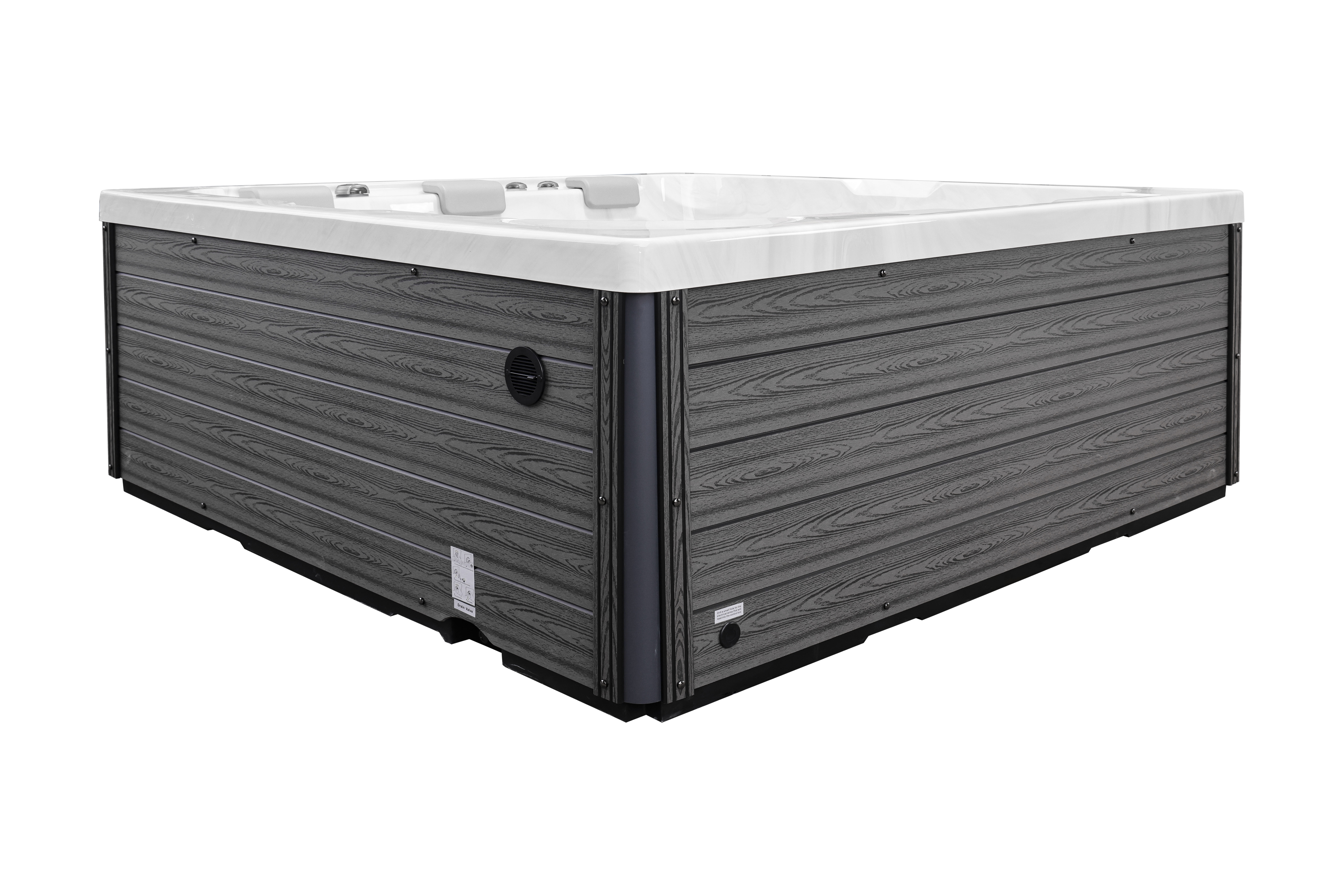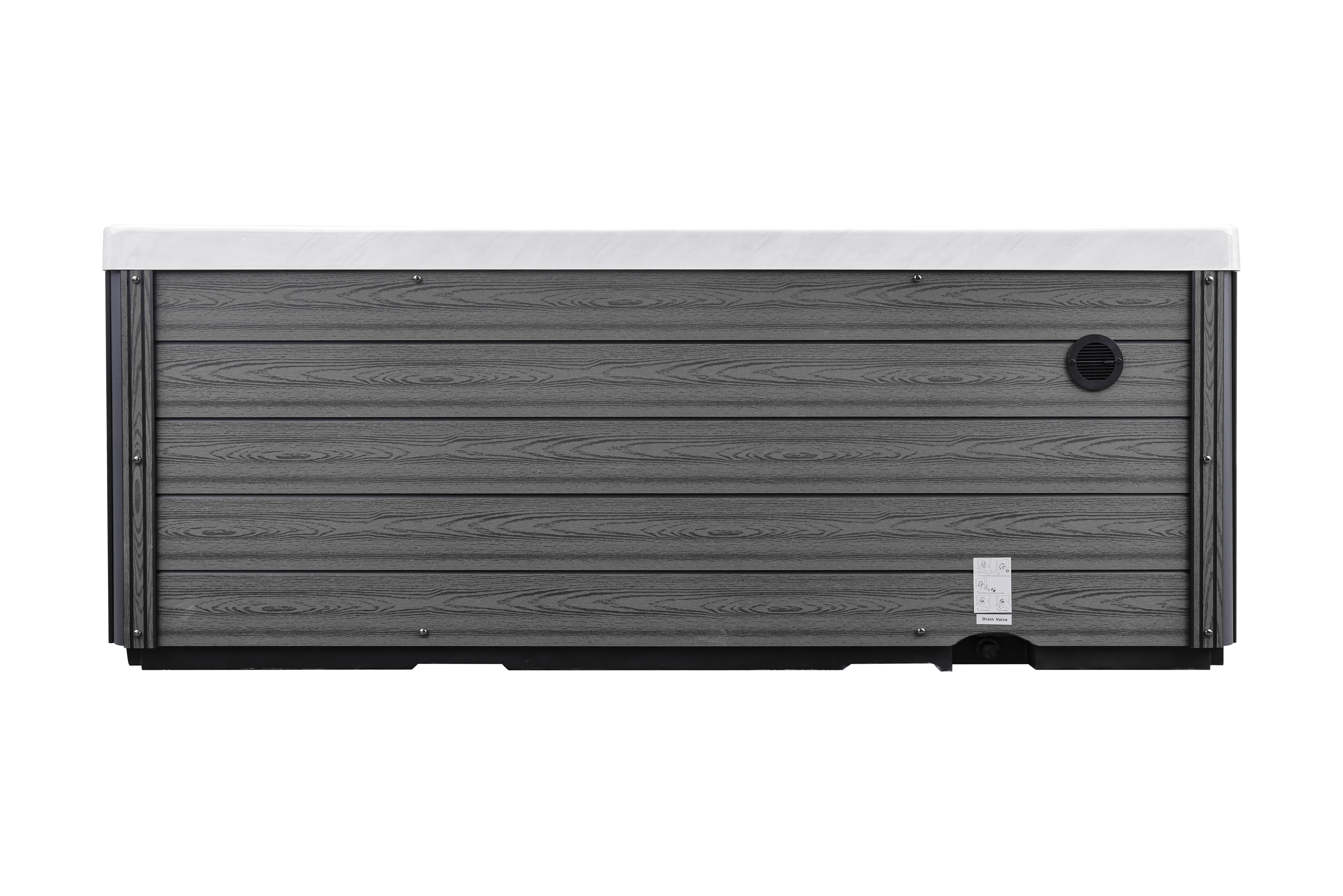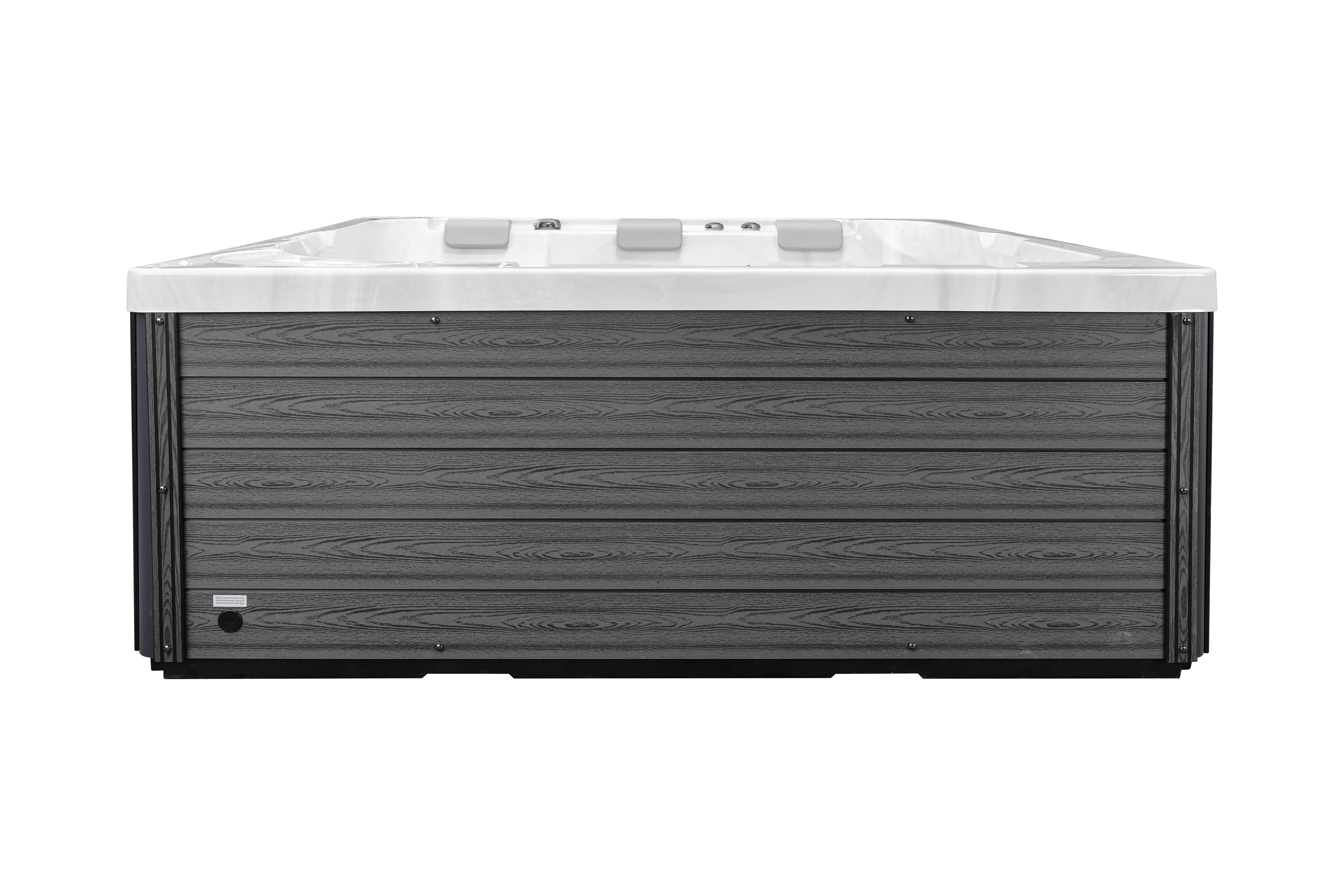 Прочная опорная рама из гальванизированной стали обеспечивает устойчивость и долговечность конструкции. Стильная обшивка из ДПК-панелей не только придает спа-бассейну современный вид, но и обладает устойчивостью к влаге, температурным колебаниям и ультрафиолетовому излучению.